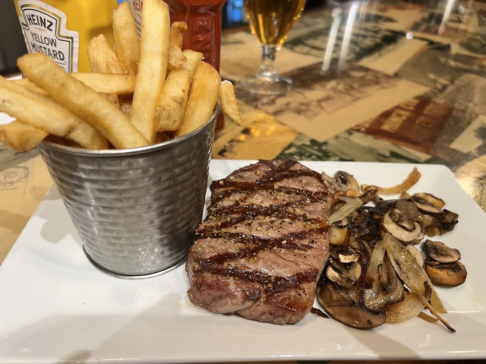 Balsamic glaze, cremini mushrooms, bleu cheese